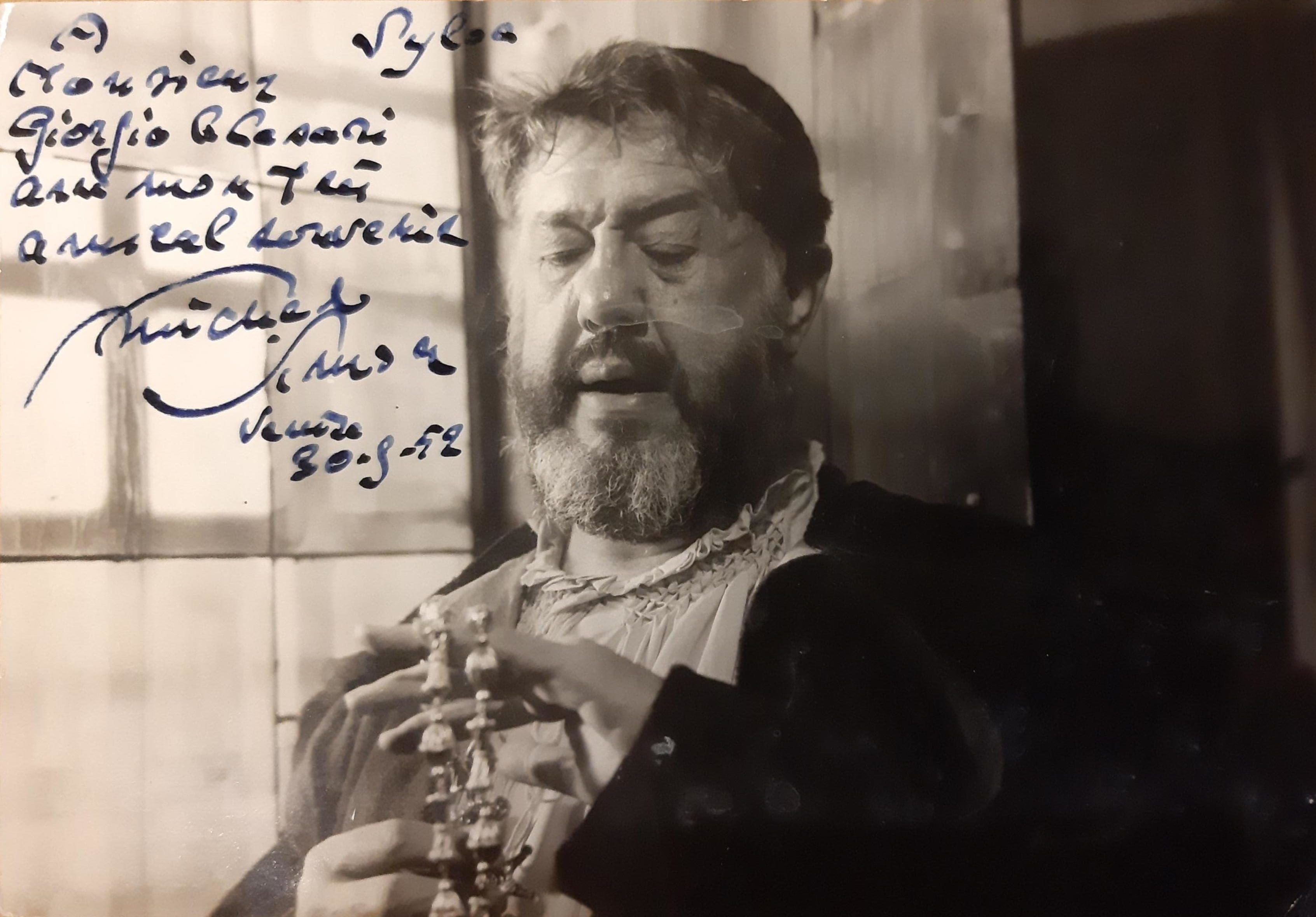 10/ Fotografia con dedica al direttore della Pauly&C. autografata dall’attore Simon Michel in costume da Shylock per le riprese de “Il mercante di Venezia” di Pierre Billon (1953), in Fondazione Giorgio Cini, Archivio Pauly&C., Libro d’oro Pauly&C., I, c. 6v (30 settembre 1952).