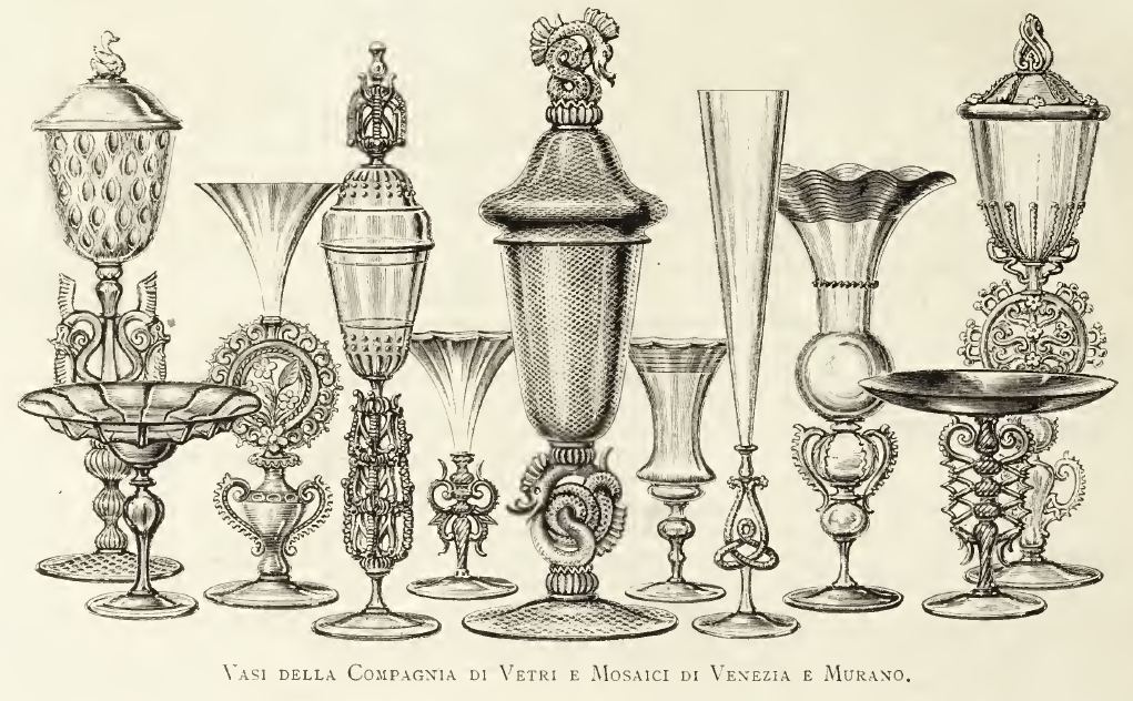 2/ Illustrazione relativa ai prodotti esposti dalla Compagnia Venezia Murano all’Esposizione Universale di Parigi del 1878, in L’Esposizione illustrata di Parigi del 1878. Illustrata, Sonzogno, Milano 1878, p. 346.