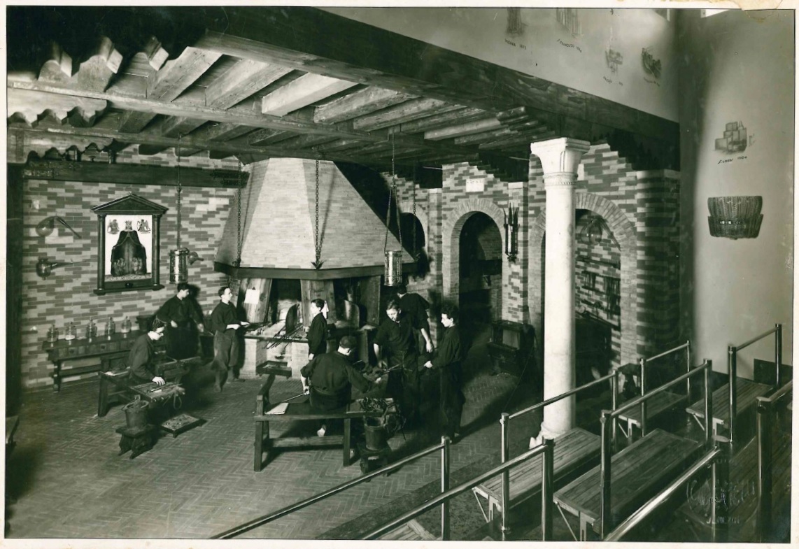 5/ Immagine promozionale della fornace dimostrativa CVM attiva a Palazzo Barbarigo negli anni ’30 del XX secolo, in Fondazione Giorgio Cini, Archivio Pauly&C.-CVM, Miscellanea Fotografie, vol. “Compagnia Venezia Murano. Fornace cinquecentesca in Palazzo Barbarigo”, cc. non numerate.