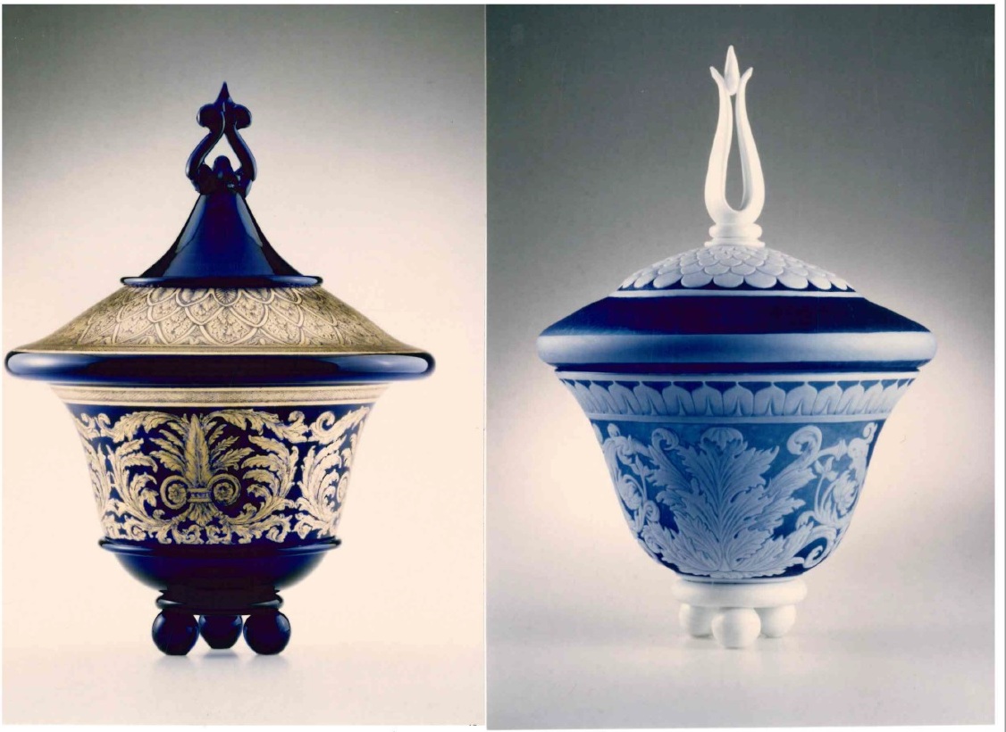11/ Coppa con coperchio “Mantegna” decorata in oro e coppa con coperchio “Mantegna” a cammeo, realizzate dalla Pauly&C.-CVM per la mostra Coquina Phantasiae tenutasi a Mantova nel 1997, in Fondazione Giorgio Cini, Archivio Pauly&C.-CVM, Miscellanea Fotografie, b. “Foto Mantova”, fotografie sciolte.