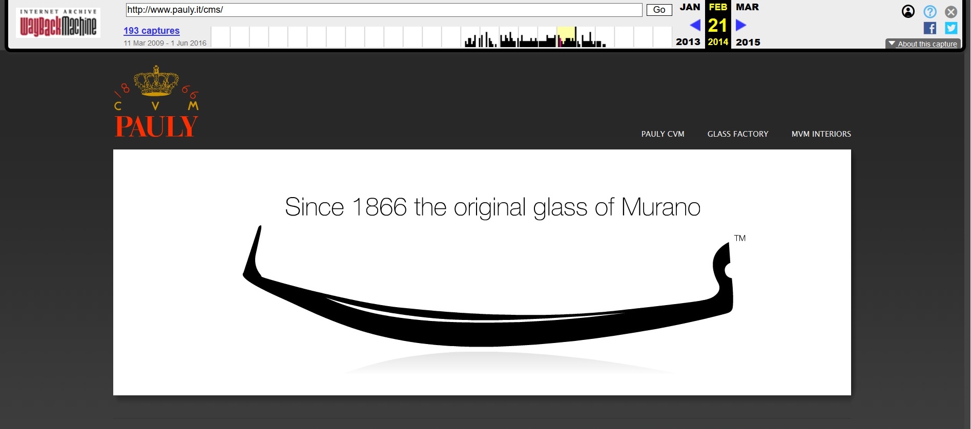 13/ Homepage del sito della Pauly Glass Factory (dicembre 2003).