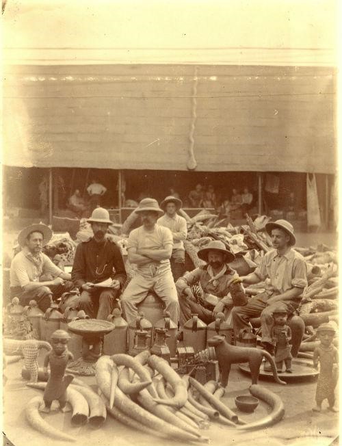 Soldati britannici davanti al bottino razziato in occasione del sacco del Benin del 1897, fotografia del Dr Robert Allman, estrazione con gelatina-bromuro d’argento, 16,50 cm x 12 cm, a disposizione sul sito del British Museum, Af, A79.13.